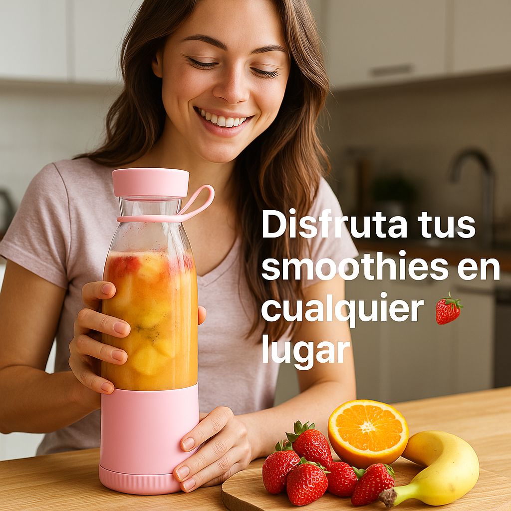 Diseñada para quienes siempre están en movimiento. Esta licuadora portátil es ligera, fácil de transportar y perfecta para llevar al gimnasio, al trabajo o de viaje